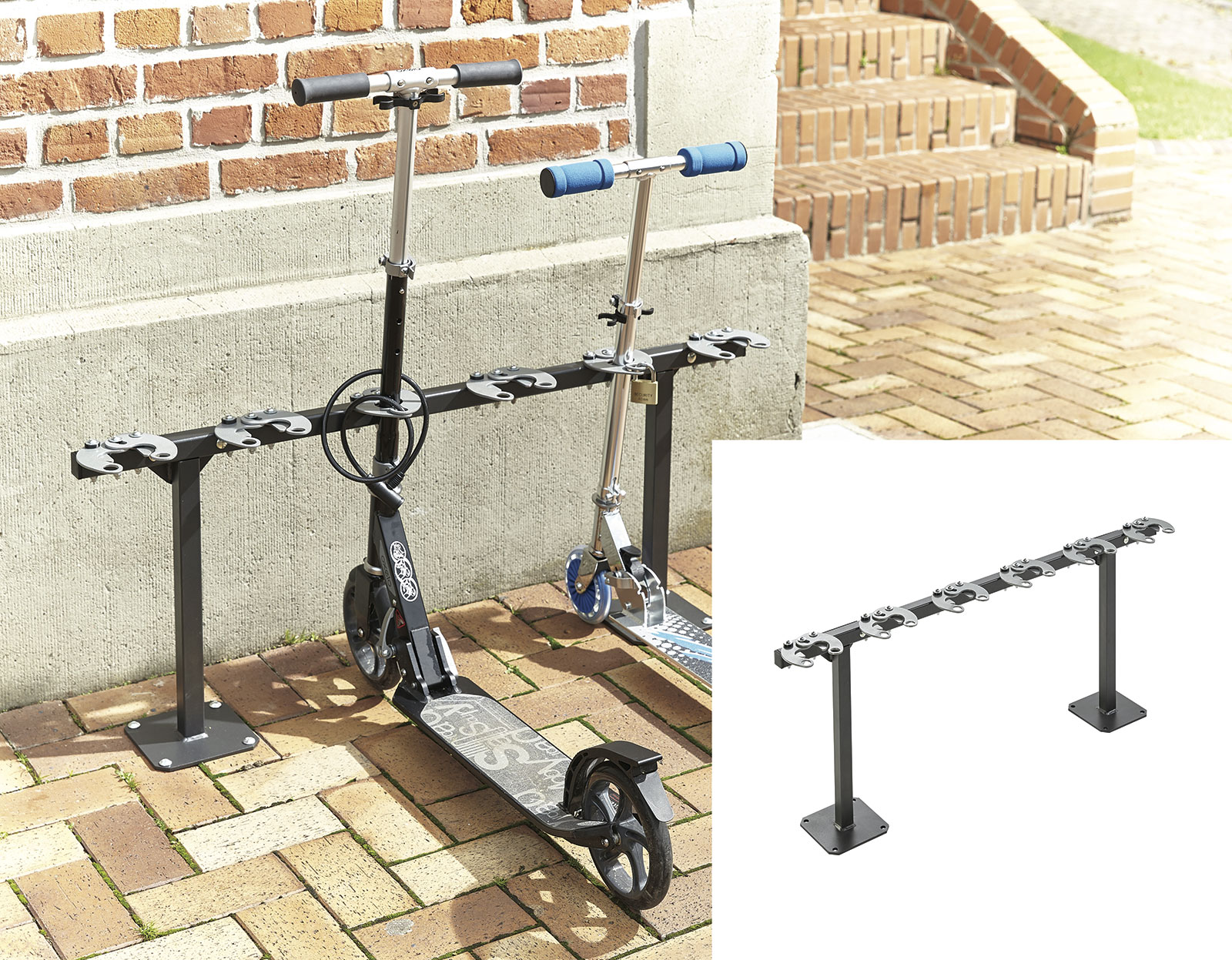 Le dispositif bloque le mat de la trottinette (Ø 70 mm maxi) par un système de pince pouvant être bloqué par un cadenas,