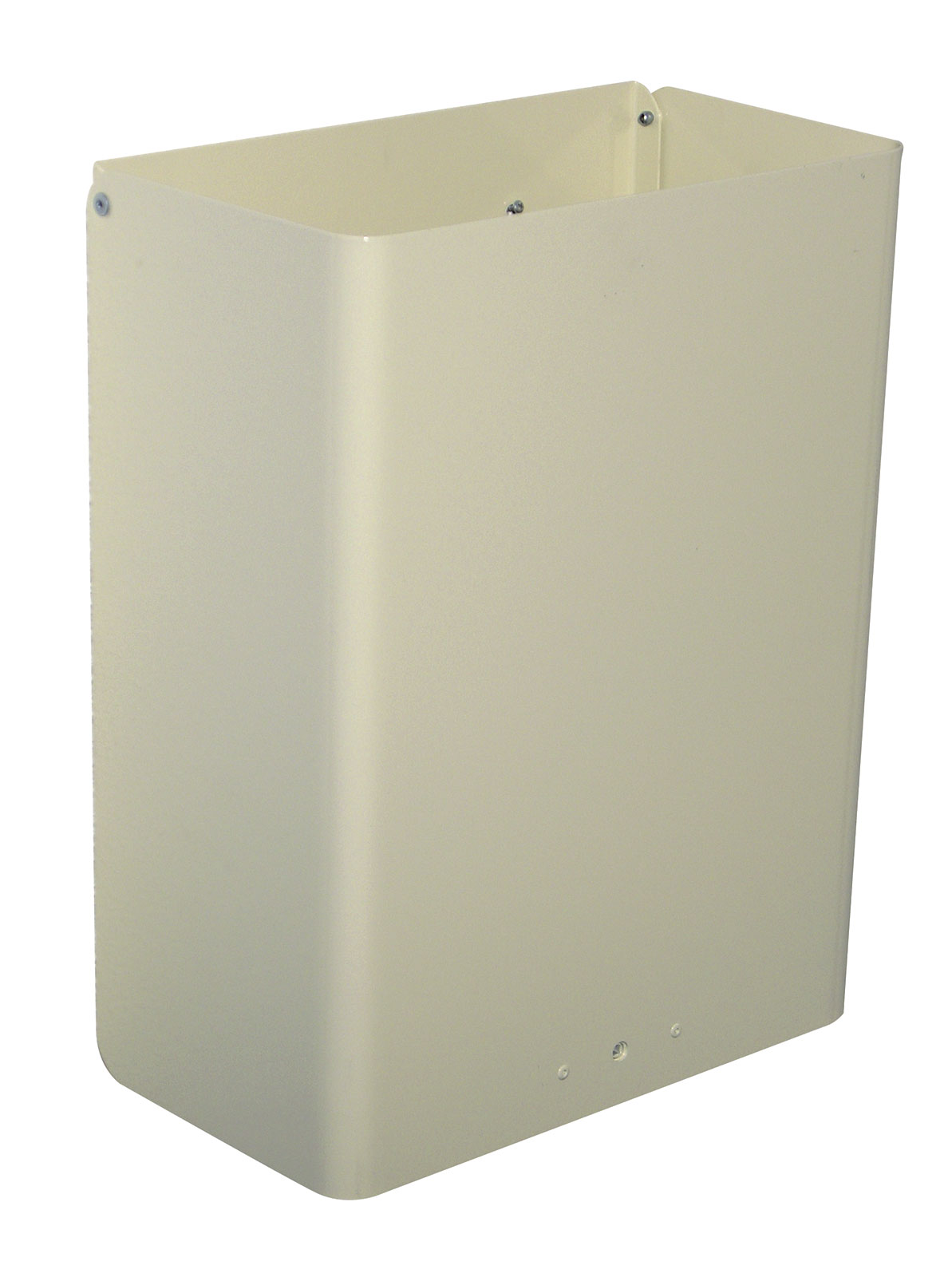 Corbeille de hall en acier 15/10ème.Pose murale : perçage au dos. Façade levante à clef carrée de 4. Finition polyzinc, peinture polyester cuite au four, couleur Beige.