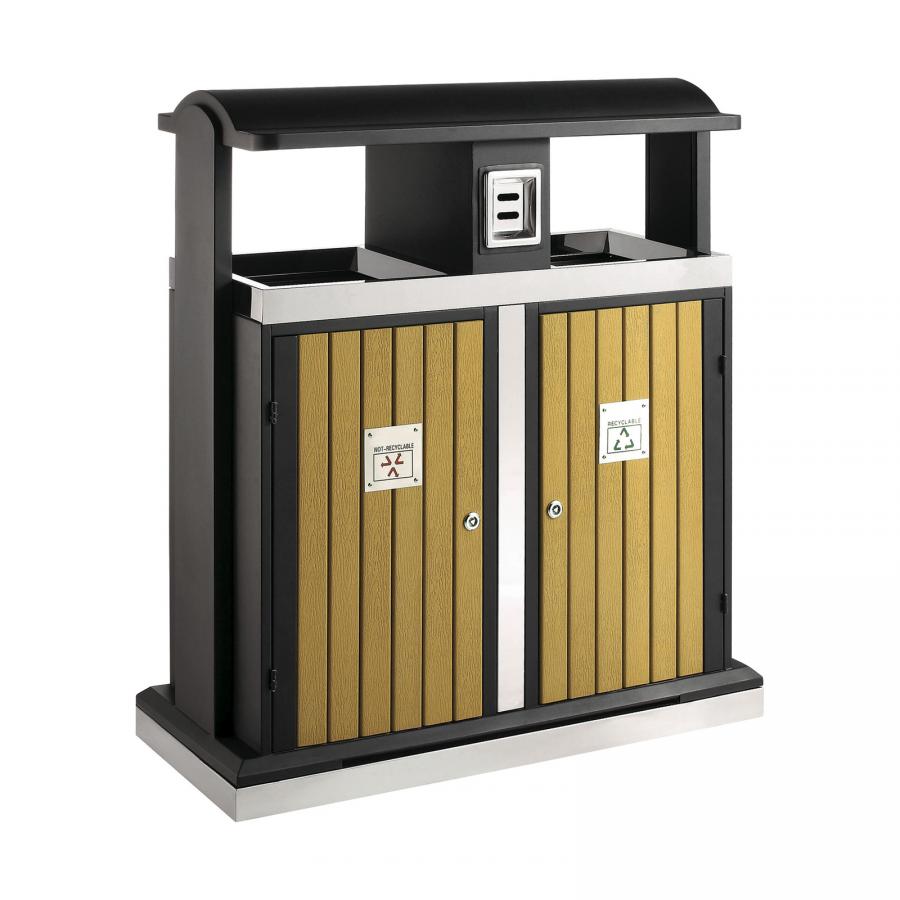 Poubelle pour le tri sélectif avec auvent, cendrier et 2 seaux en acier galvanisé (2 x 50 Litres).