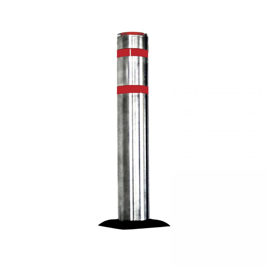 Borne rétractable réalisée en ce qui concerne la partie mobile (tube rond) en acier inox brillant,
