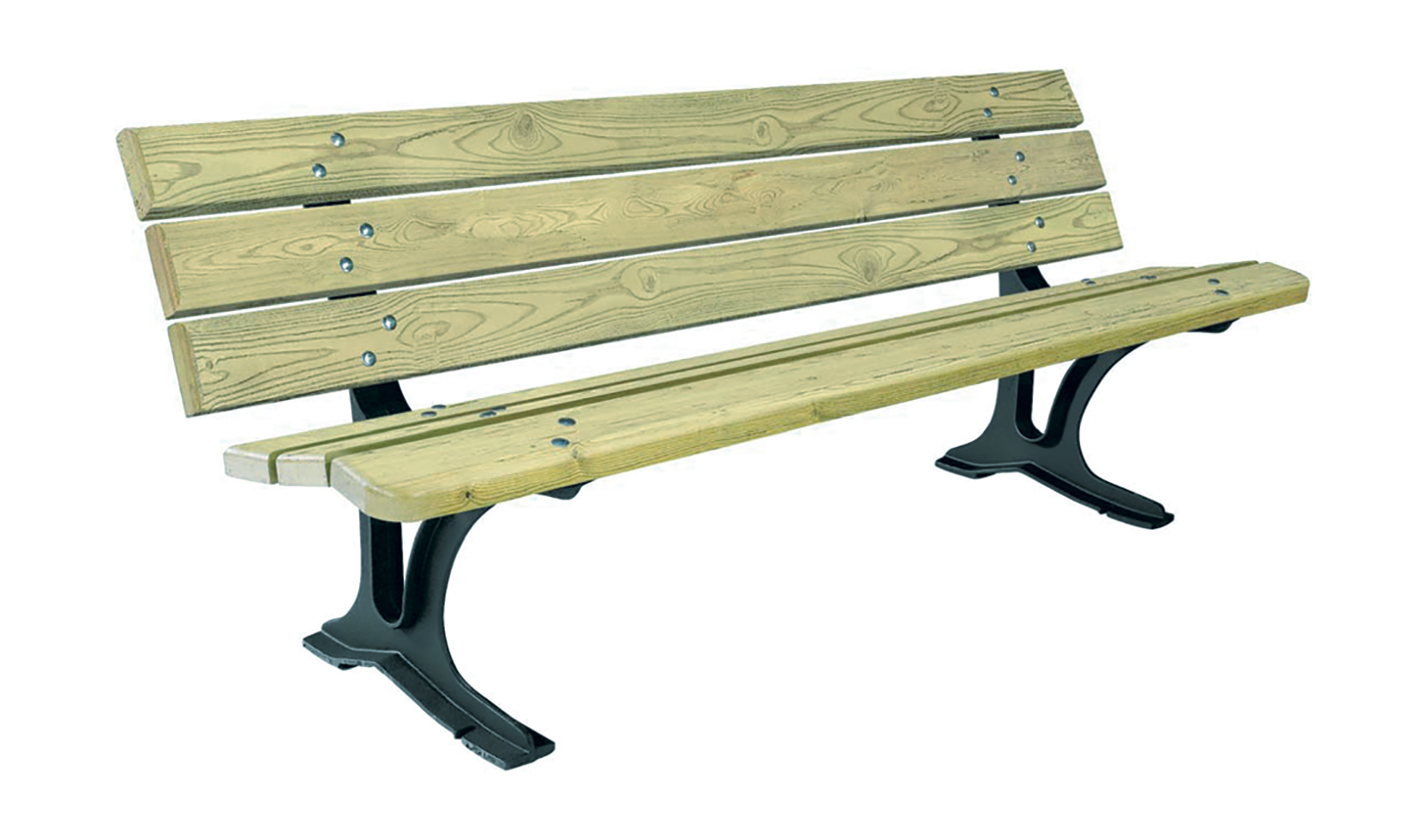 Banc 6 lames en pin du Nord, traité autoclave classe IV, certifié FSC, ép. 35 mm.